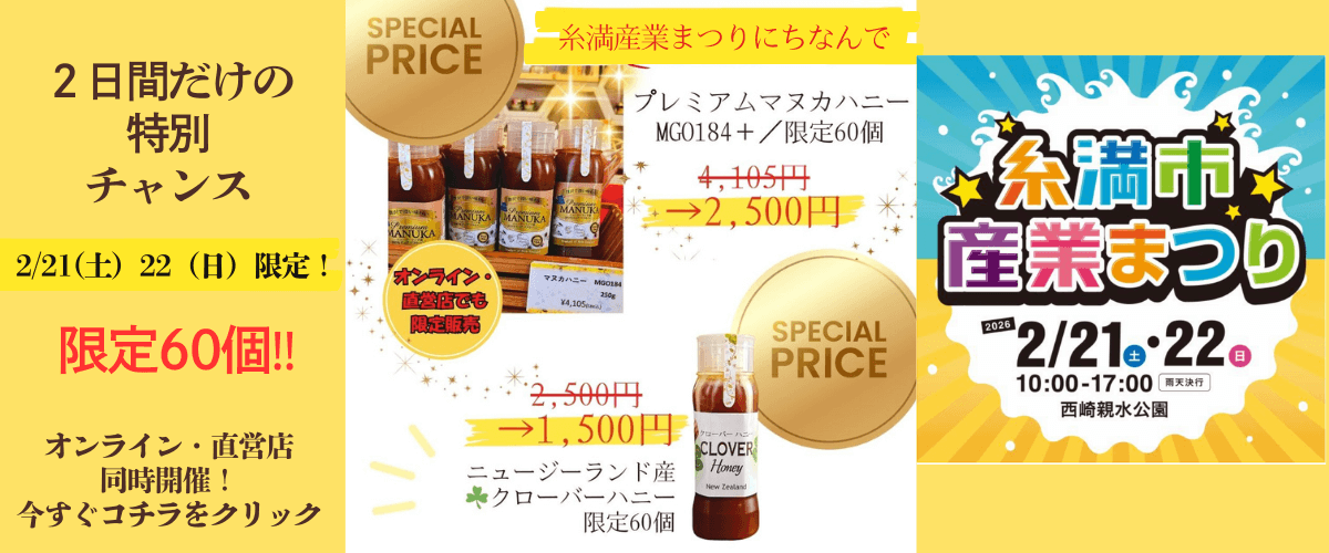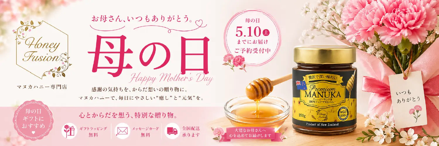 また、マヌカハニーの味には独特な風味があるものもありますが、ハニーフュージョンで扱っているマヌカハニーは、クセがないものを厳選して直輸入しているのでとても食べやすく、まろやかで濃厚な甘みと好評をいただいています。