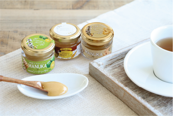 「プレミアムマヌカハニー」と 爽やかな香りと風味が特徴の「マヌカ&シークヮーサー」、 ローストしたピーナッツの香ばしさが堪らない 「マヌカ&ピーナッツ」のセットです。